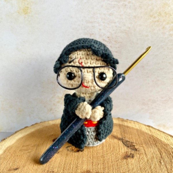 Hoy te traigo esta dulzura de amigu que mide apenas 11 cm y es la compañera ideal de toda tejedora! Con sus bracitos, sostiene tu aguja o lapicera y se sostiene parada. Usa su peinado como alfiletero para una experiencia completa.
