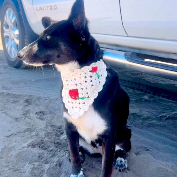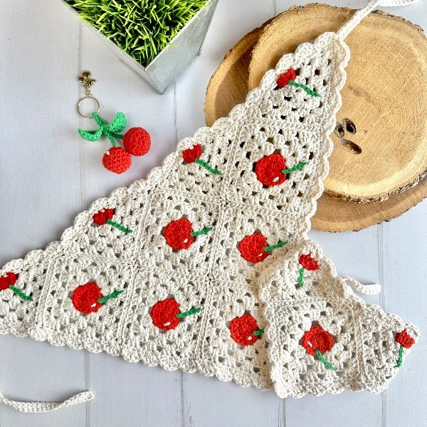 Hola Tejeamiga! hoy te propongo tejes la Bandana cherry en dos tamaños.